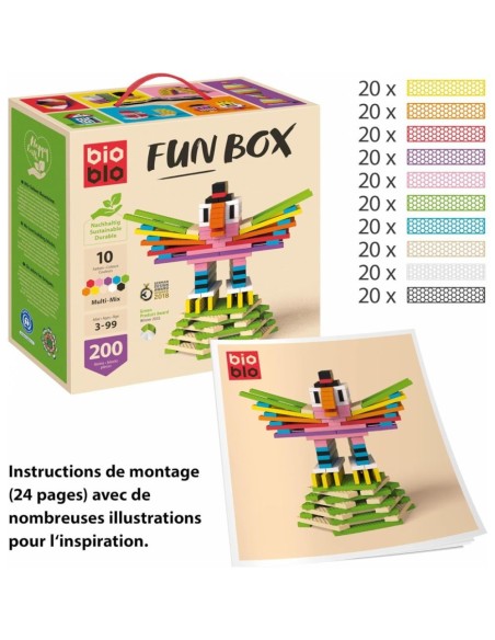- L'innovation venue d'Autriche : les Bioblos sont colorés, écologiquement durables, pédagogiques et ont une forme unique en nid d'abeille ajourée qui assure une stabilité maximale. Ils sont parfaits comme cadeaux de Pâques pour les enfants et comme building blocks pour les jeux créatifs. Nous proposons également des coffrets-cadeaux qui sont une excellente façon de profiter de la durabilité et de la pédagogie des blocs de construction. Nous vous souhaitons beaucoup de plaisir à lire, à faire du shopping et à construire avec Bioblos !