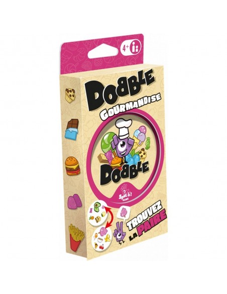 Dobble, le must des jeux d’observation pour toute la famille, est de retour dans une édition pour les gourmets et les gourmands. Des symboles à vous donner faim font leur apparition : soyez le premier à repérer celui en commun entre deux cartes pour remporter la partie !