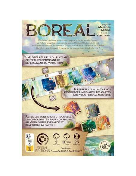 Dans Boreal il vous faudra gérer habilement vos ressources et poser les meilleures cartes dans votre pyramide pour cumuler plus de points de victoire que votre adversaire.