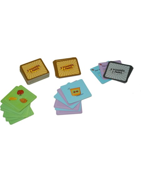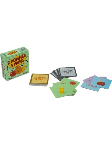 2 Pommes 3 Pains est un jeu d’annonce. Les joueurs tirent une carte à tour de rôle et annoncent une valeur de Pomme et une valeur de Pain. Si un joueur se trompe ou prend trop de temps à réfléchir, il ramasse l’intégralité des cartes posées en pénalité. Pour gagner vous devez récupérer le moins de cartes possible. Oui, vous avez du pain sur la planche !