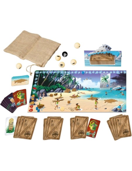 a chaque tour les joueurs naufragés devront choisir une action parmi quatre: pêcher, recueillir de l’eau, chercher du bois ou fouiller l’épave du bateau. Faites équipe pour survivre mais soyez prêt à sacrifier vos camarades en cas de pénurie.