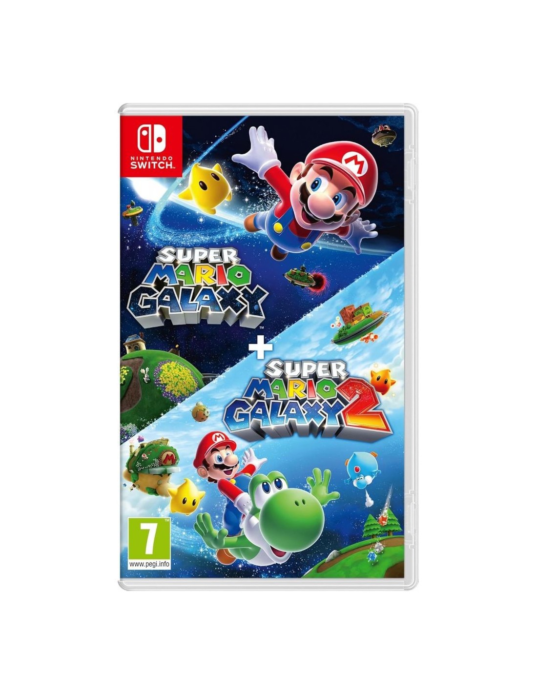 Sortis initialement sur Wii et acclamés par la critique, les jeux de plateforme 3D Super Mario Galaxy et Super Mario Galaxy 2 vous emportent aux côtés de Mario dans son exploration de planètes aux lois de gravités uniques ! Tout commence quand la princesse Peach est capturée par Bowser, Mario doit alors se lancer à l’aventure pour récupérer des étoiles et sauver l’univers ! Chaque planète est un nouveau terrain de jeu sphérique empli de défis inventifs et de pouvoirs inédits, le tout bercé par une bande-son orchestrale. Super Mario Galaxy 2 prolonge l’expérience avec de nouvelles planètes, de nouvelles mécaniques et introduit notamment le personnage de Yoshi qui démultiplie les capacités de Mario ! Avec le mode coop deux joueurs, vous pouvez facilement partager cette odyssée spatiale avec un proche.